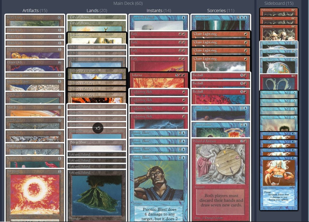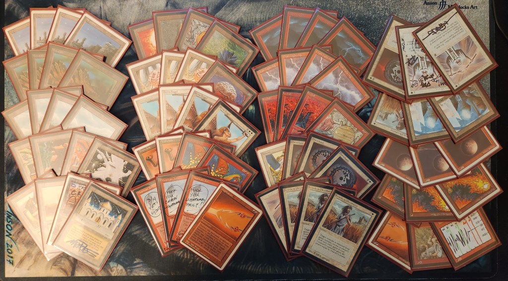 Tournament Structure: For this event we went with the Atlantic ruleset, with typical EC/American-style reprint allowances: all original art, original frame, non-foil printings (including Revised, 4th/Chronicles, FBB/FWB, CE/IE, WC, APs).