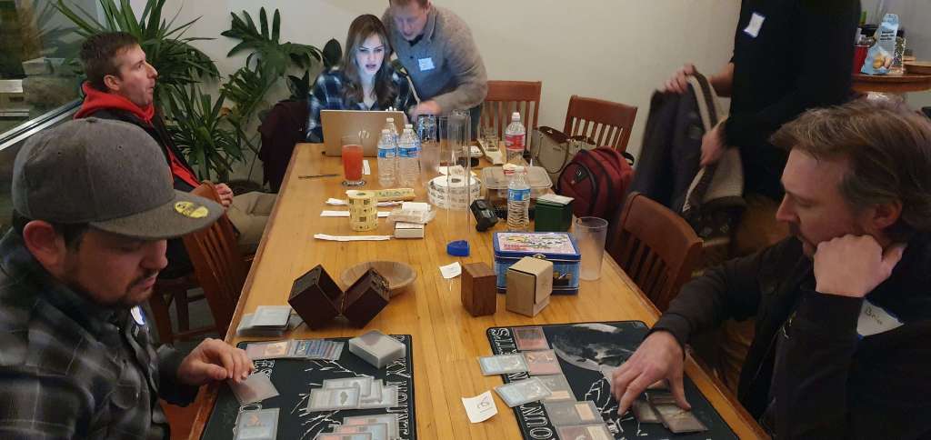 The Beginning: All four seasons in one day? Sure, why not. Nothing stops a Yeti. Bitter cold morning temps, a half foot of snow, and what turned out to be a beautiful sunny and somewhat warm afternoon led to 26 wizards doing battle over the course of eight hours to crown our first annual 93/94 Yeti champion. YetiCon brought together friends of old and friends of new to raise over $1500 for the Jefferson County Action Center. Check out their charitable work! https://theactioncenter.org/