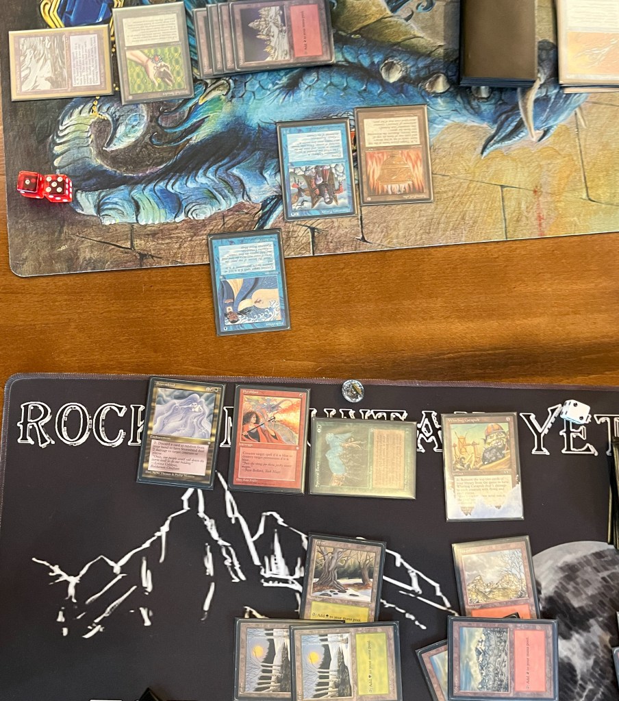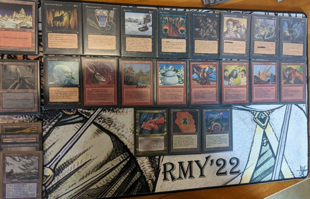 Brian unfortunately didn’t take a pic that day but had a blast playing his deck. Some key cards include Giant Oyster, Spiny Starfish, Wall of Kelp, and the Lava Burst I wanted so badly.