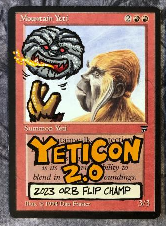 Featured Card: Big Thanks to the Simpson brother’s for another year of creativity with their killer copy of Casa/City of Brass. As with all YetiCon events, these cards are legal to use at YetiCons moving forward.