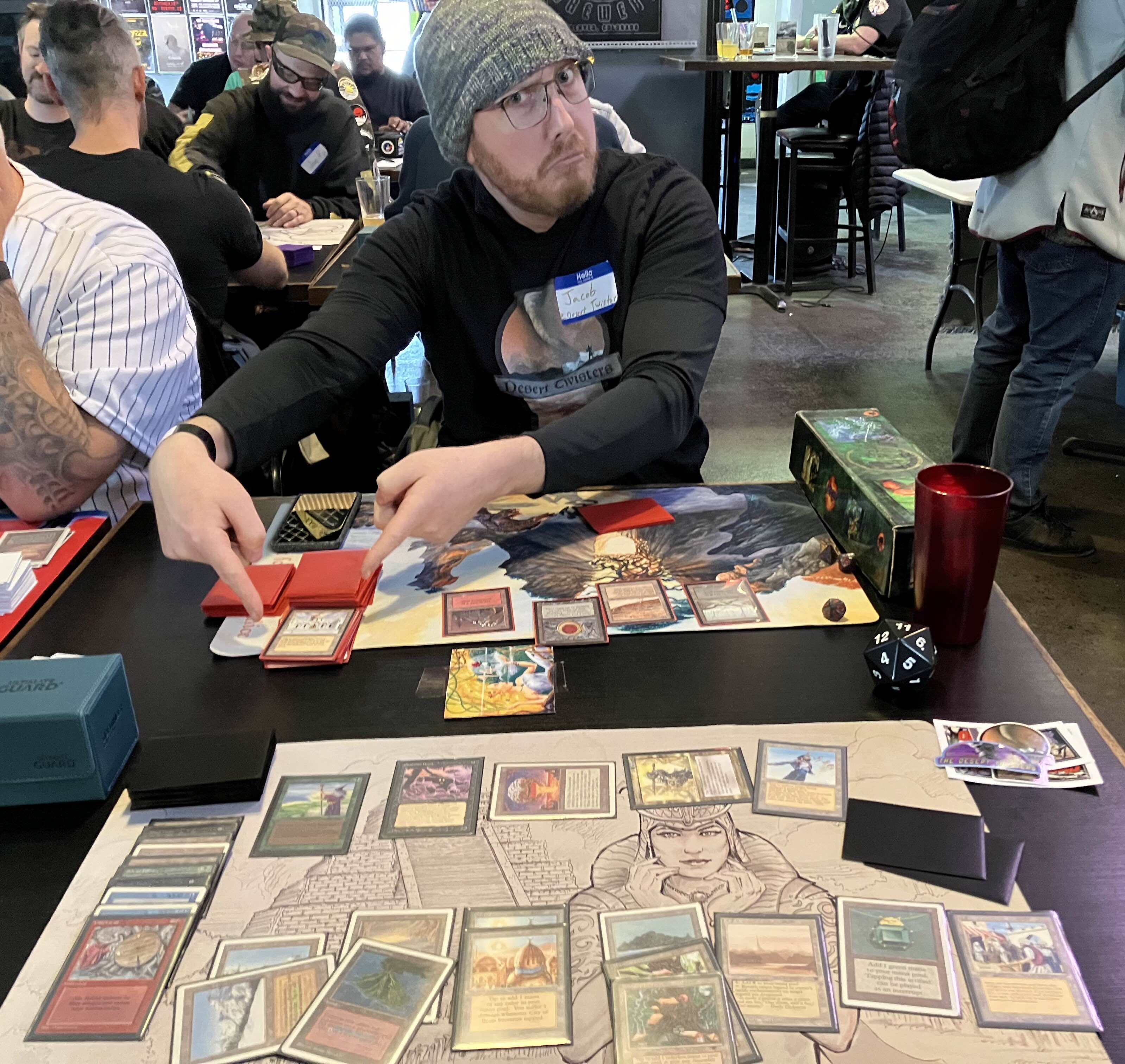 In addition to our Old School Magic event on Saturday, the Yetis ran it back Sunday with a 26 person Sorcery event. Amazing games were had, incredible playmats were showcased, and even Truitt’s girlfriend tried her hand at some Sorcery!