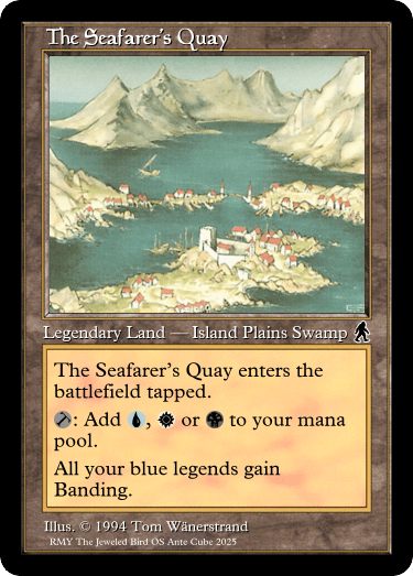 This is the first cube I designed, and though it’s had many iterations over the years, it retains it’s most defining feature: games are played for Ante, and you must play with everything you win. This cube features a range of cards from Alpha to Fallen Empires, and though it is unpowered, some of the most powerful, interesting and unique cards are available to brew with. This year’s version of this cube even includes a small portion of custom revisions to existing cards, like the Jeweled Bird above, so pay close attention to everything you draft as it may not always be what you expect.