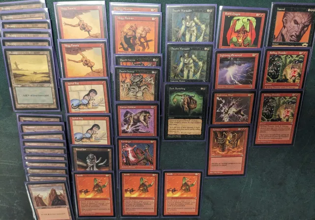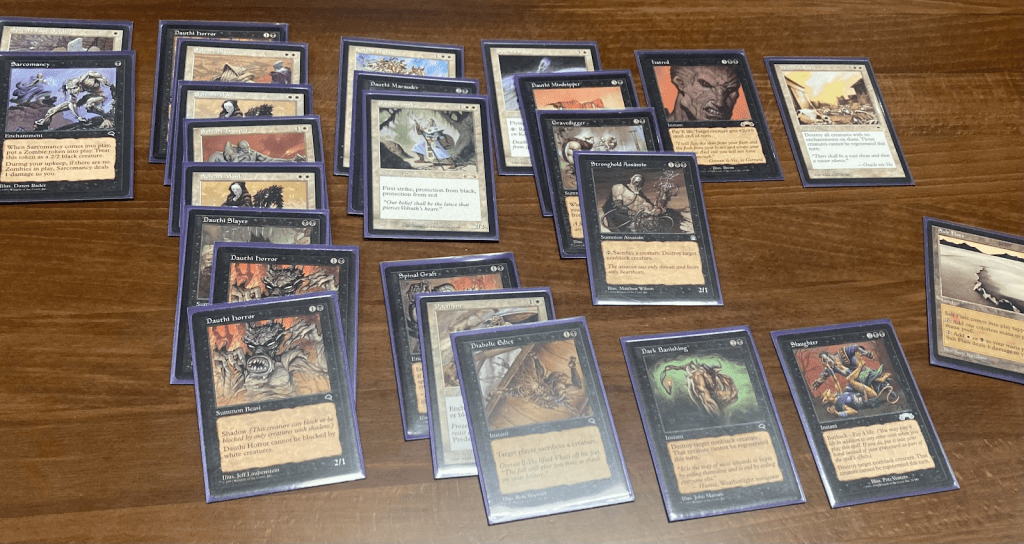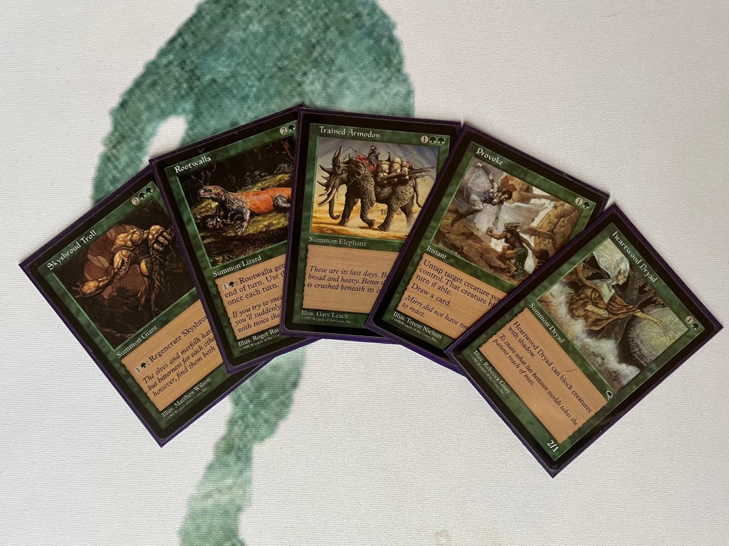 Once I knew that this project was appealing to me and to others, I started thinking about what I actually wanted out of the cube. This was really my attempt to build an ideal cube. I’d previously designed an Alpha to Alliances cube, but at the time I wasn’t sure I’d ever actually acquire the cards (spoiler, I eventually would). But Tempest let me design and build something that I could hold and play, and along the way fix many of the play issues that crop up from wonky old school cards.