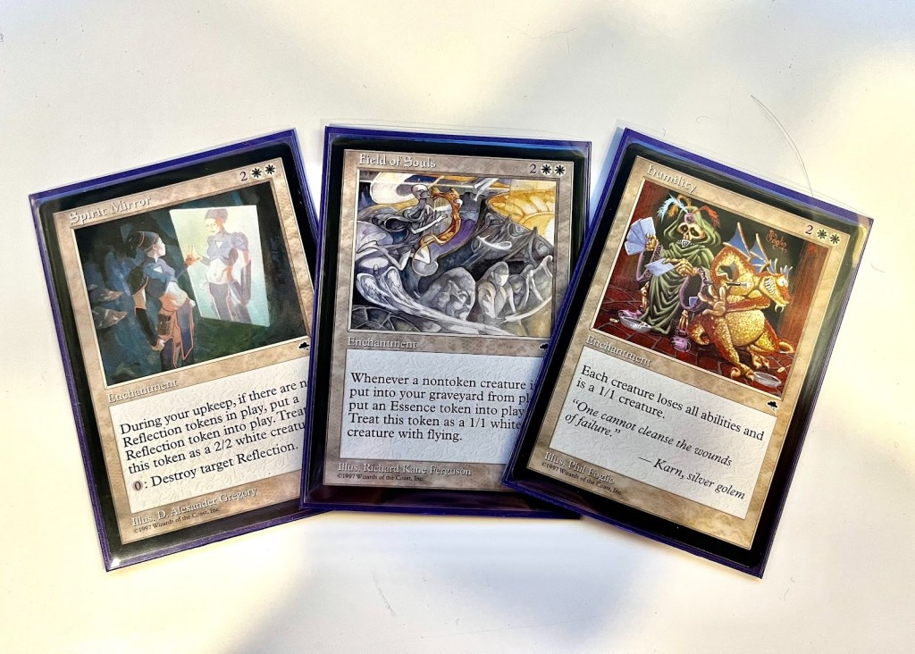 I also realized I needed something to make White more exciting and appealing. I thought balance-wise, it was actually okay. But it didn’t have the splashy effects that pulls people into a specific direction, so I added some strong enchantments from white that I always loved. Humility in particular is very iconic, but previously hadn’t really filled a role in the cube. With these, I was able to lean in more to the “tokens” theme with white and added Pegasus Stampede. It’s a classic theme for white for old school and a different angle of attack than many of the rest of the cards in the cube. I did skip Orim’s Prayer after a long debate with a friend. It’s great and a classic combo with Humility of course, but I felt it didn’t do enough on its own to warrant the spot.
