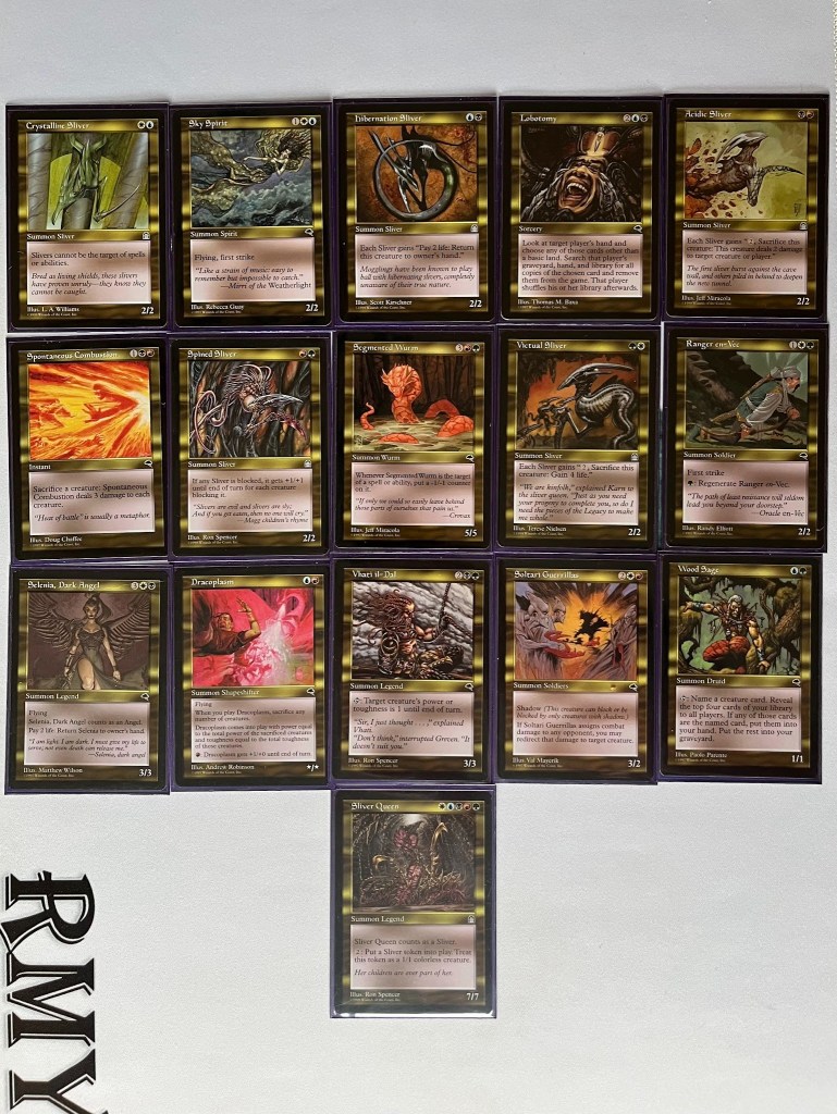 The first version was basically everything I thought was good or interesting from Tempest, Stronghold, and Exodus. It came in around 500 cards. I drafted it to see what would happen. After a couple dozen drafts, a few powerful themes kept emerging, but there was still a ton of stuff that did nothing or wasn’t that exciting. Slivers were the clearest example of this issue. They were present, but they didn’t function as a real deck, and since they were such an important part of the appeal, that was something I needed to fix.