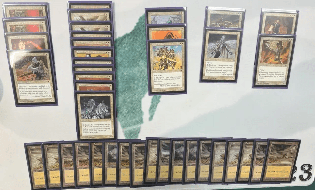 I’d had the cube designed as something I was happy with for a few years on CubeCobra. Then finally, I got together a few times with the Rocky Mountain Yetis and drafted others’ Ice Age cube and Mirage cube. I had a blast! It really let me feel the draw of experiencing someone’s special cube and opened the door for me to actually play with a cube I’d designed. I wanted to contribute something back to the group, so I started collecting the cards.