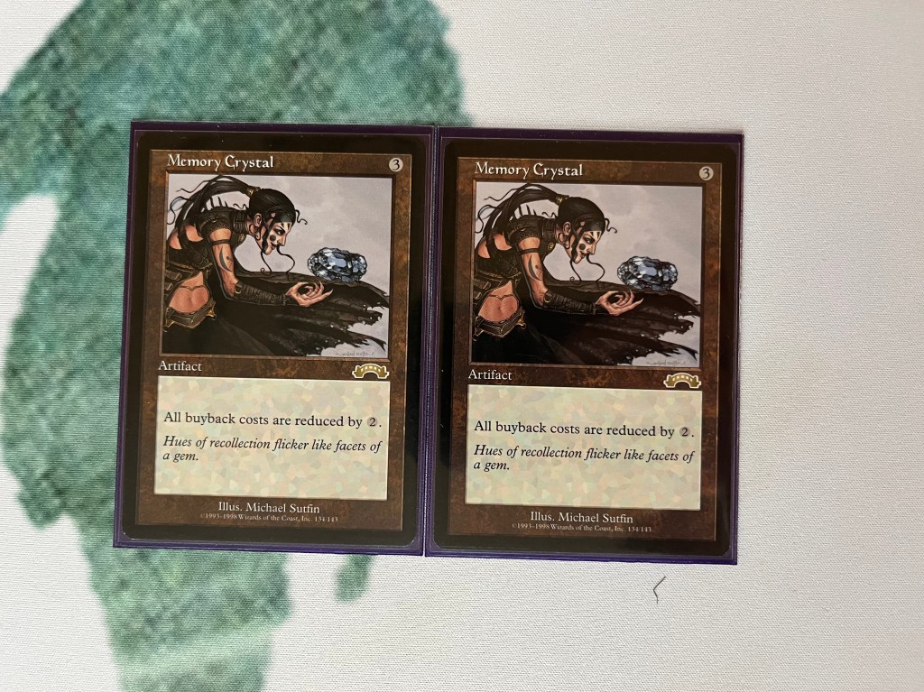 I didn’t have space for the 5 medallions, though they are very iconic. In their place, I put the two Memory Crystals. It can be a throwaway card, but even one is a good incentive to play a buyback deck. Two can get pretty disgusting. I love it.