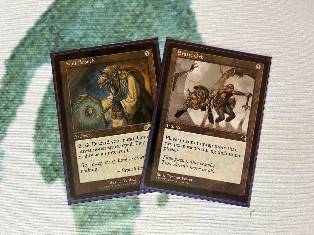 For colorless cards, I wanted some counterplay to top strategies, including buyback decks. I added Static Orb. It’s not a card that I was enamored with as a kid. Sure it’s iconic, but for what? I’ve never seen one played or people use them. However, buyback can run away with the game. And although aggro has the tools to beat this (speed), I wanted some extra interaction. And Tempest came already with this super weird and iconic rare, so of course I had to include it. As a bonus, it interacts nicely with the 3 Propaganda for an imitation of the popular PropaOrb deck. I haven’t seen this new addition played yet, but people have been excited about it, so that’s already a win. Null Brooch was also a house at the time and is a great tool for aggro decks to stop buyback.